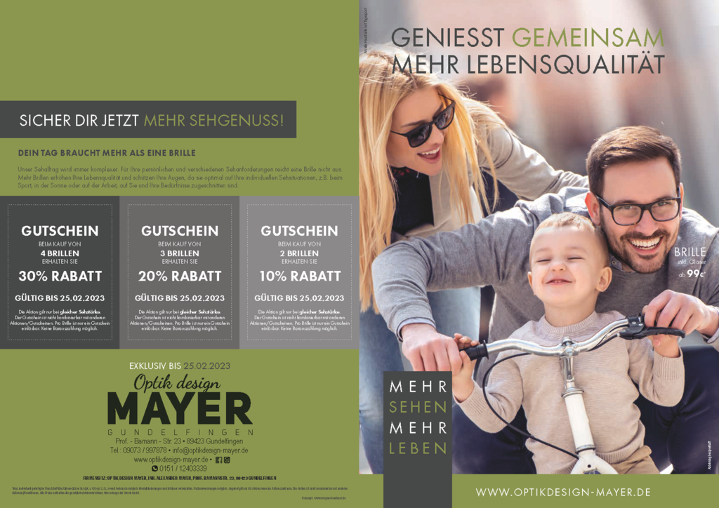 Halbjährliche Kontrollen des vorderen äußeren Augenabschnittes + Augenglasbestimmung sind beim Abschluss eines Jahresabo`s im Preis inbegriffen.